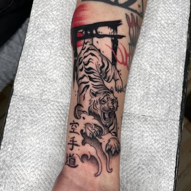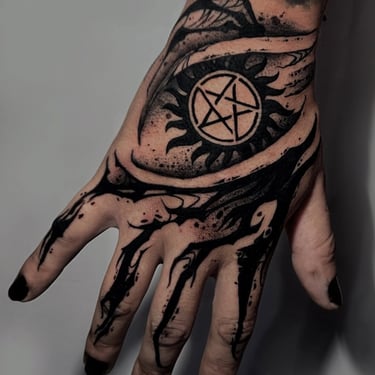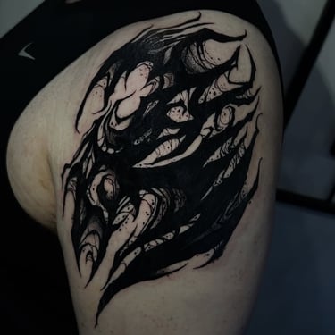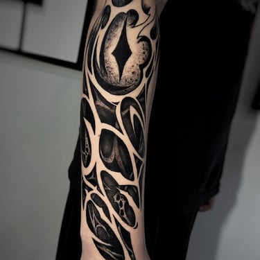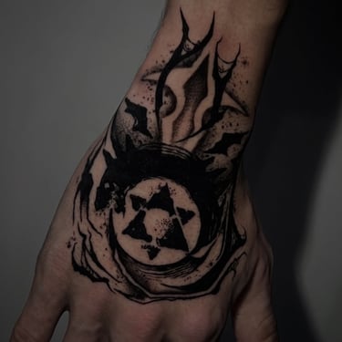 O estilo de tatuagem Dark Ornamental combina tipografias elaboradas com uma estética sombria, muitas vezes incorporando fontes góticas, traços pesados e detalhes intensos. Esse estilo tem um impacto visual forte, podendo ser focados em letras, frases, símbolos ou ornamentos, criando uma fusão entre o design tipográfico e a arte sombria, em projetos com uma estética misteriosa e dramática.