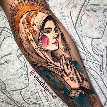Tatuagens com temáticas religiosas e mitológicas são uma maneira poderosa de expressar espiritualidade, fé e conexão com narrativas ancestrais.