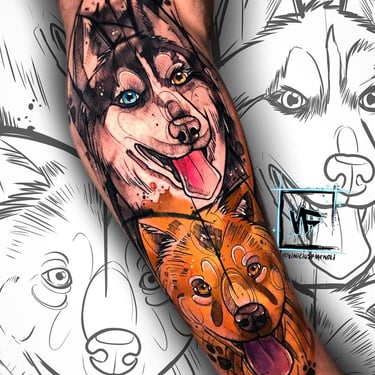 Os projetos autorais permitem representações estilizadas de acordo com o estilo de cada artista, sempre capturando a essência e a personalidade do animal em uma arte customizada exclusivamente para você, tornando essas tatuagens ainda mais únicas e permitindo incluir detalhes como o nome do pet, datas especiais ou elementos que reforcem a sua história.