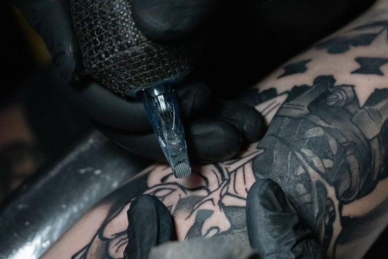 Buscamos excelência em cada traço, e para isso utilizamos equipamentos de última geração e materiais de alta qualidade, sempre prezando pela segurança e bem-estar de nossos clientes. Seja uma arte detalhada ou minimalista, nosso compromisso é transformar suas ideias em tatuagens únicas e memoráveis.