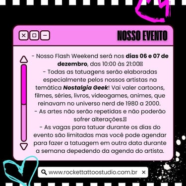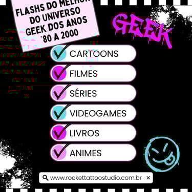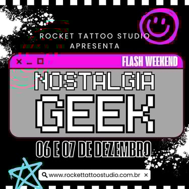 O Rocket Tattoo Studio está prestes a te levar para uma viagem no tempo para as décadas que marcaram gerações com o Nostalgia Geek Flash Weekend, um evento especial dedicado aos apaixonados pela cultura pop dos anos 1980, 1990 e 2000.